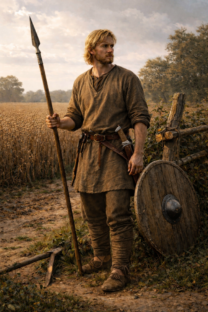 The spear was the most common weapon associated with free men. Often kept rather than carried, it could be used for defense, hunting, or levy service. Ownership signaled freedom and responsibility.